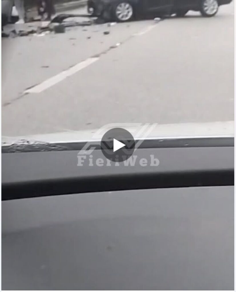 Pamjet e siguruara nga Fieri Web tregojnë dy persona të shtrirë në rrugë si edhe dëmet e mëdha të mjeteve të përfshira në aksident.