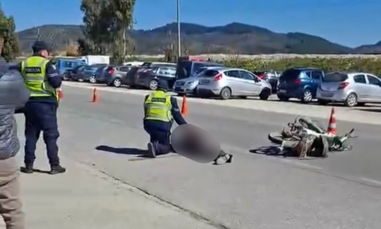 Aksident në aksin e vjetër Levan–Vlorë, drejtuesi i motorit përfundon i shtrirë në tokë – policia i jep ndihmën e parë në vendngjarje