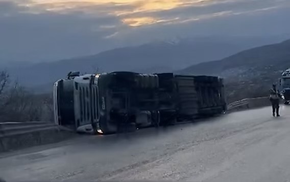 Një kamion është përmbysur në zonën e Qafë Thanë, duke krijuar vështirësi për qarkullimin e automjeteve në këtë segment rrugor.