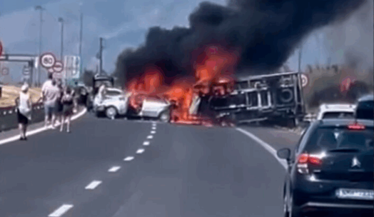 Protothema shkruan se kamioni fillimisht u përplas kokë më kokë me automjetin përpara tij, i cili u përfshi nga flakët. Në bord ndodheshin 4 shqiptarë me banim në Athinë, një burrë 59-vjeçar, një burrë 61-vjeçar, një grua 57-vjeçare dhe një grua 49-vjeçare. Tre të parët u karbonizuan, ndërsa pasagjerja e fundit arriti të dilte vetë nga makina.