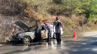 Automjet shpërthen në flakë në aksin Fier-Levan, bllokohet trafiku për disa minuta
