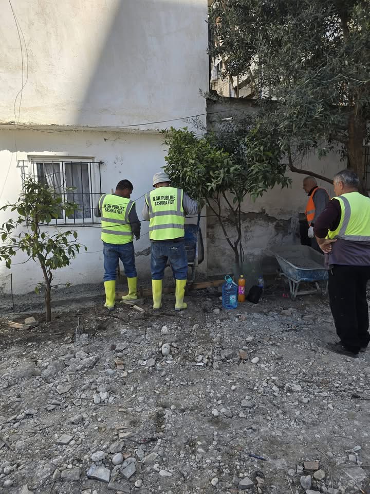 Bashkia Fier vijon punën për rikthimin dhe sistemimin e hapësirave publike në një tjetër bllok pallatesh në lagjen “Kastriot”, në Fier.