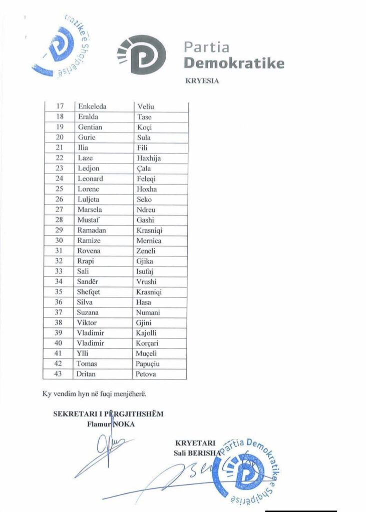 Por surpriza më e madhe nuk është vetëm mungesa e votës. Në listën zyrtare bien në sy edhe emra të dubluar, çka tregon se ose partia ka shtuar anëtarët me fotokopje, ose lista është bërë me metodën “copy-paste”. Ose rëndësia eshtë ZERO kur ne nje dokument qe firmoset nga Kryetari ka gabime serioze dhe as sekretari Noka se ka mar mundimin ti hedhi nje sy asaj letre.