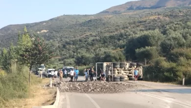 Levan – Tepelenë / Përmbyset mjeti i rëndë me inerte në kthesën e Poçemit
