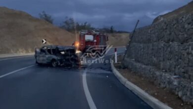Aksident në Qafë Plloçë, makina përfshihet nga flakët pas përplasjes