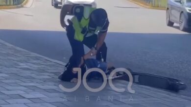 I vendosin shqelmin në fyt se e preku policin me skuter, policia: Po lëvizte në sens të kundërt (VIDEO)