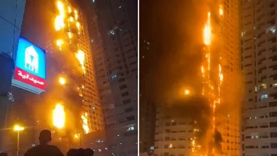 Copa të mëdha prushi binin mbrëmë nga qielli në një qytet të Emirateve të Bashkuara Arabe, kur një zjarr i…