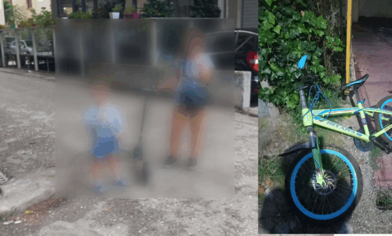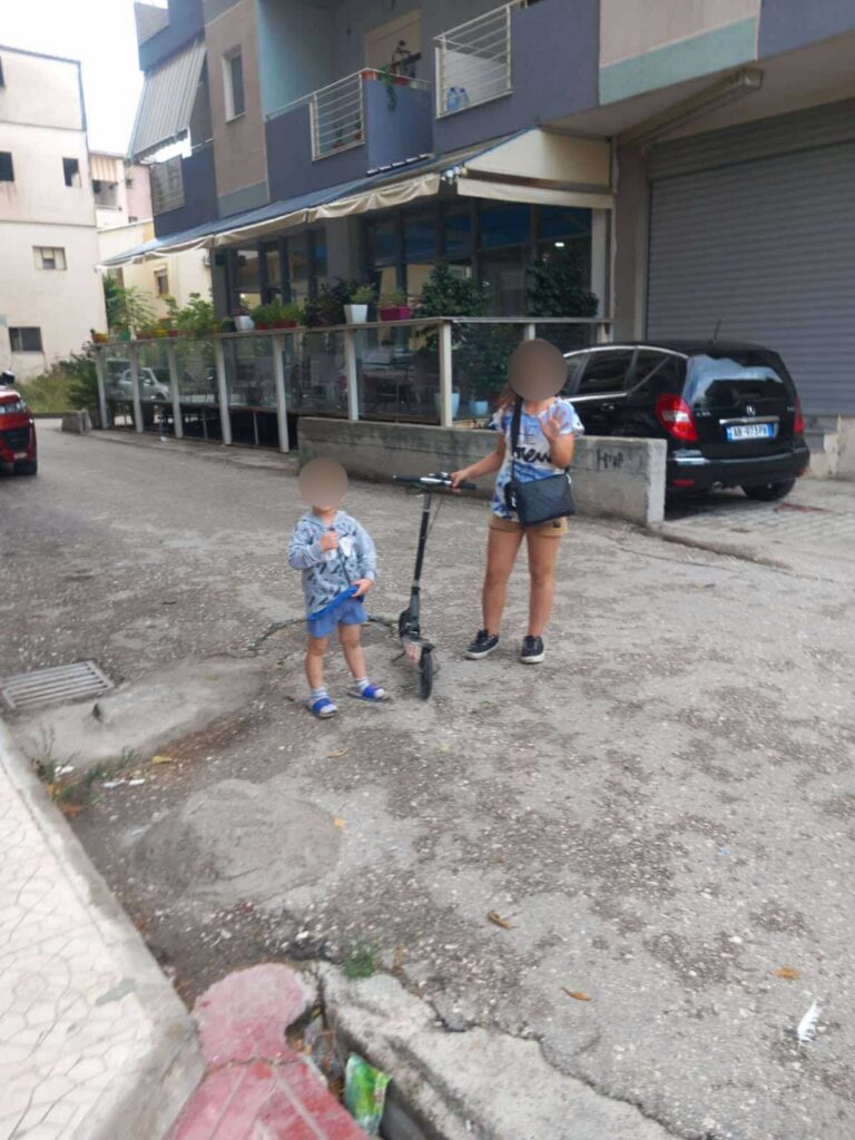 📸 Fotot e dërguara nga qytetari tregojnë momentin kur dy fëmijë marrin një skuter (monopatinë), si edhe pamje nga tentativa e vjedhjes së një biçiklete, por që u pengua nga administratori i pallatit.