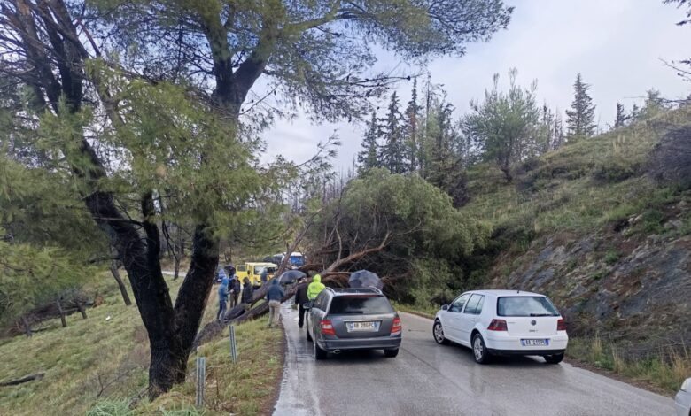 Era e fortë gjatë natës rrëzon dy pisha në aksin Fier–Cakran, bllokohet qarkullimi tek “Kthesa e Shkozës”