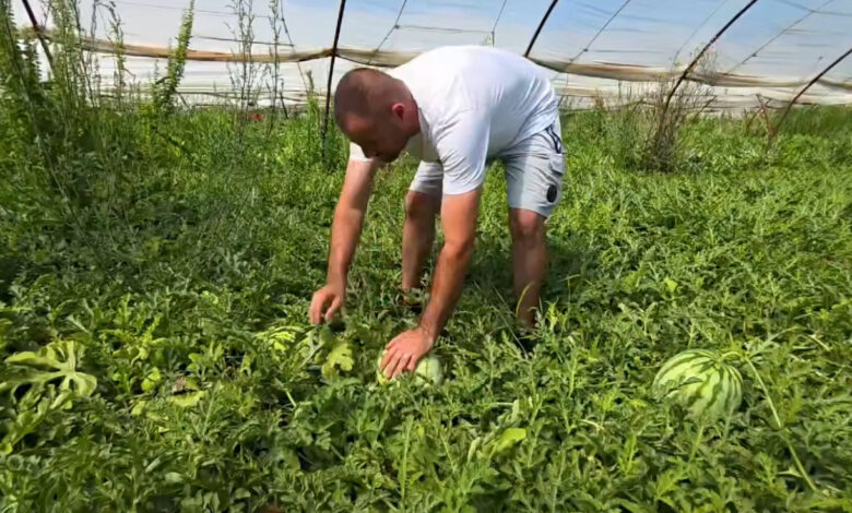 Frakull, Fier – Safet dhe Ermal Troka, baba e bir me mbi 25 vite përvojë në bujqësi, po vazhdojnë me përkushtim traditën e kultivimit të bostanit në zonën e Frakullës.