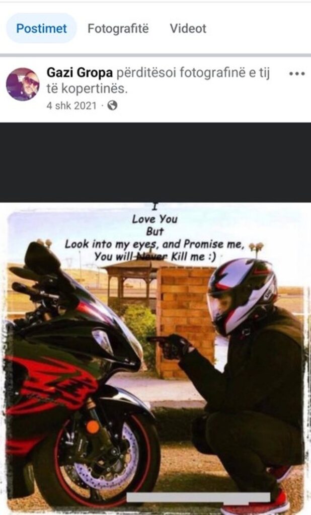 “Të dua, por më shiko në sy dhe më premto. Nuk do të më vrasësh kurrë!”, shkruhej në foto, duke i ‘folur’ motorit për rrezikut që paraqet. Një mesazh i trishtë, që tani, pas tragjedisë, duket si një paralajmërim i heshtur. Fotoja tregon shumë për pasionin që kishte ai për motorët.