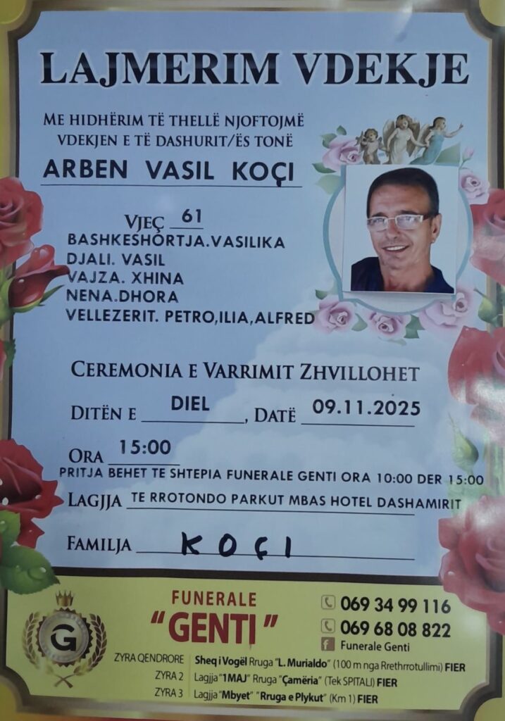 Fieri Web i shpreh ngushëllime familjes Koçi për humbjen e parakohshme të Benit. 🕊️