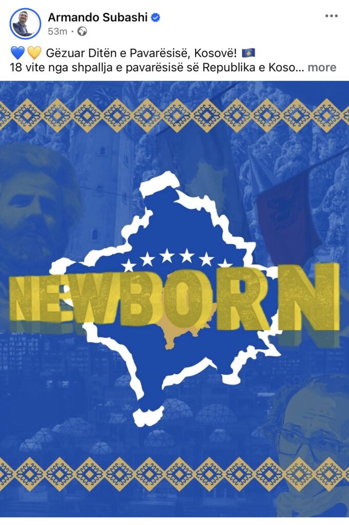 Në mesazhin e tij, Subashi thekson se 17 shkurti shënon një nga datat më të rëndësishme në historinë e kombit shqiptar, duke e cilësuar pavarësinë si fryt të sakrificës, rezistencës dhe dashurisë për liri.