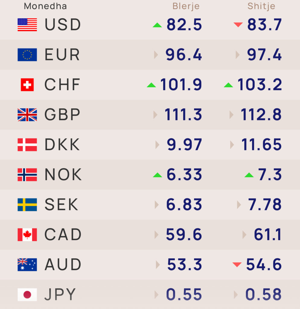 Monedhat e tjera si dollari kanadez (CAD), jeni japonez (JPY), lira turke (TRY), korona daneze (DKK) dhe korona suedeze (SEK) kanë ruajtur luhatje të lehta.