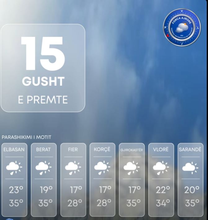 Ditën e premte, vendi ynë do të jetë në ndikimin e kushteve atmosferike relativisht të paqëndrueshme. Moti parashikohet fillimisht i kthjellët, ndërsa gradualisht shtim vranësirash mesatare deri të dendura më të theksuara në relievet malore.