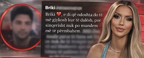 Një postim i publikuar në rrjetet sociale dhe që po qarkullon me shpejtësi të madhe ka rikthyer sërish vëmendjen te Brikena, një nga emrat më të komentuar të ditëve të fundit në Big Brother VIP Albania. Në mesazhin e bërë publik, personi që pretendohet se është partneri i saj jashtë shtëpisë i drejtohet me tone të qarta zhgënjimi, duke lënë të kuptohet se raporti mes tyre ka hyrë në një fazë shumë delikate.