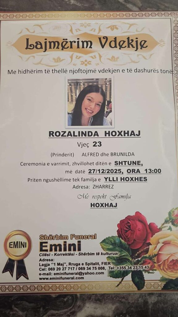 🕊️ Fieri Web i shpreh ngushëllimet më të sinqerta familjes Hoxhaj, të afërmve dhe miqve, duke u bashkuar në këtë moment të vështirë dhimbjeje.