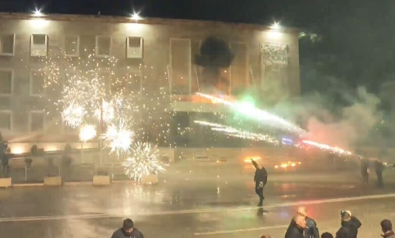 Protesta e opozitës/ Hidhen molotovë dhe fishekzjarre drejt Kryeministrisë, ndërhyn policia