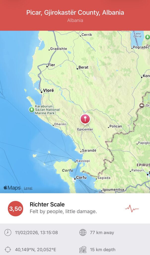 Shkundet Jugu i Shqipërisë! Tërmet me epiqendër pranë Picarit
