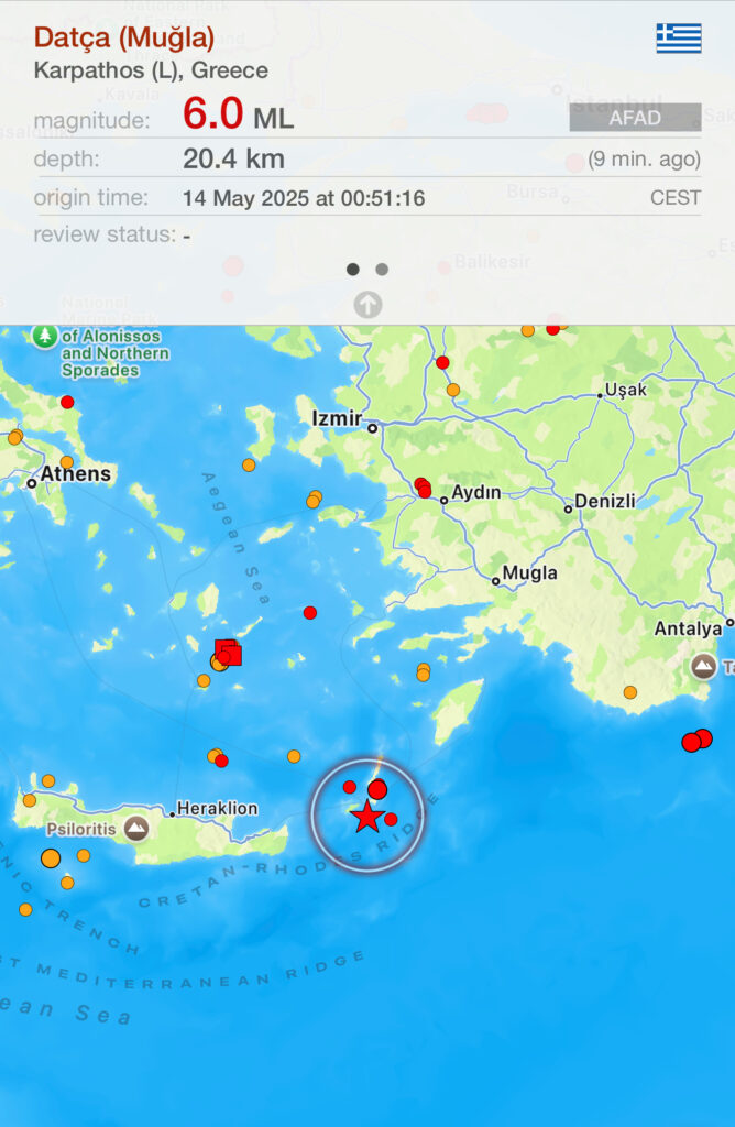 Një tërmet me magnitudë 6 ballë ka goditur ditën e sotme zonën pranë ishullit të Karapathos në Greqi, duke shkaktuar shqetësim te banorët dhe turistët. Sipas autoriteteve greke, epiqendra e tërmetit ishte në detin lindor të Mesdheut, rreth 60 kilometra nga ishulli. Ky është një nga seritë e tërmeteve që kanë goditur rajonin vitet e fundit, duke nxitur shqetësime për aktivitetin sizmik në këtë zonë.