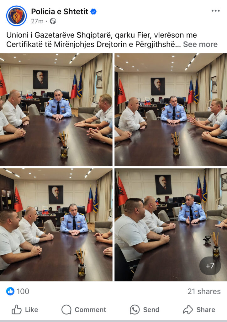 “Ky është një nga rastet e para ku një Drejtor i Përgjithshëm i Policisë i përgjigjet medias në kohë reale, pavarësisht ngarkesës së madhe të punës. Kjo qasje është shembull për t’u ndjekur”, – u shpreh Muçaj.