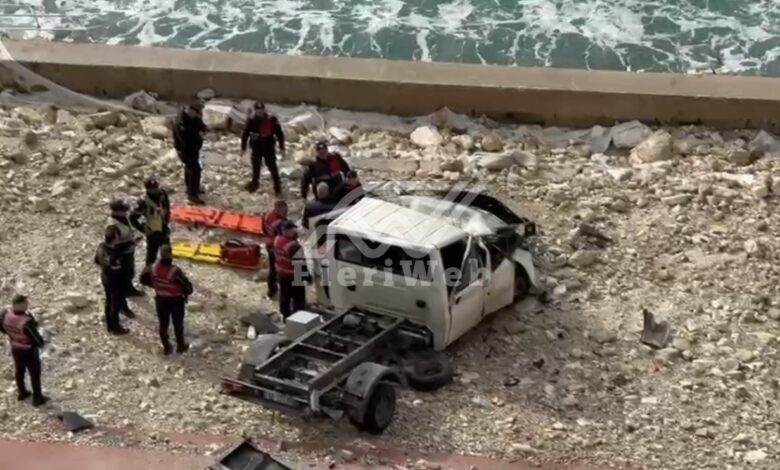 Një aksident i rëndë është regjistruar pak minuta më parë në qytetin e Vlorës, në zonën e njohur si “Kalaja”, ku një kamionçinë ka rënë nga një lartësi.